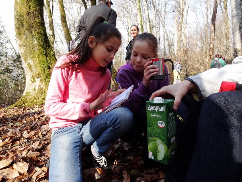 Юные краеведы тщательно записывают все детали похода (может быть тоже отчет напишут:)