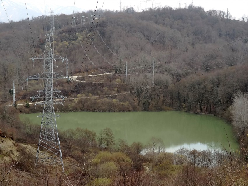 И выводит нас к озеру (водохранилищу) над которым видна вершина горы Дзыхра, труднодоступная и плохо проходимая (по словам Б. А. Тарчевского)