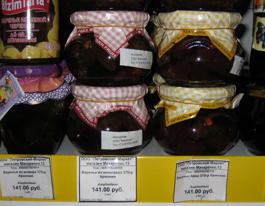 Пока политики думают как помирить два древних народа, как решить «Карабахский вопрос», в этом магазине его уже решили, создав совместное армянское — азербайджанское предприятие по выпуску вкуснейшего варенья. Давайте так и будем поступать. Лучше торговать, чем воевать.
