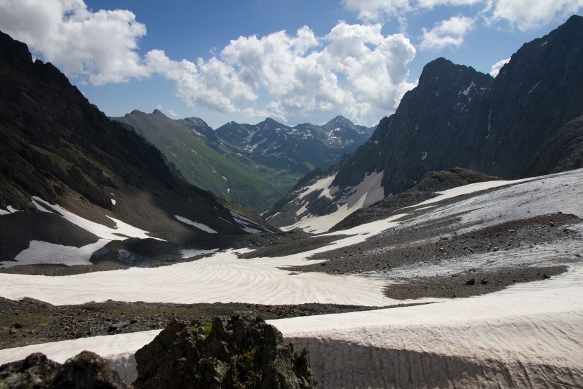 С вершины Псеашха Южная, Ледник Холодный и долина р.Холодная.