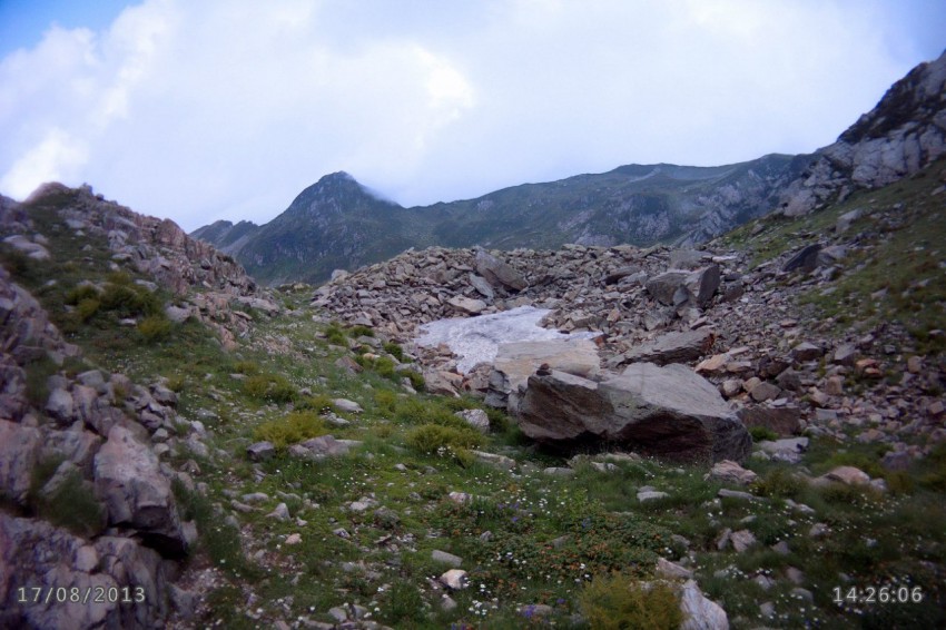 Спускались уже по другой тропе, и почти успели до ливня… А здесь вот малые каменные круги спрятались, и еще один снежник. Ацангуары?