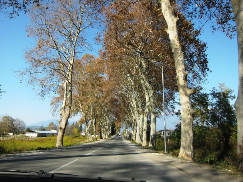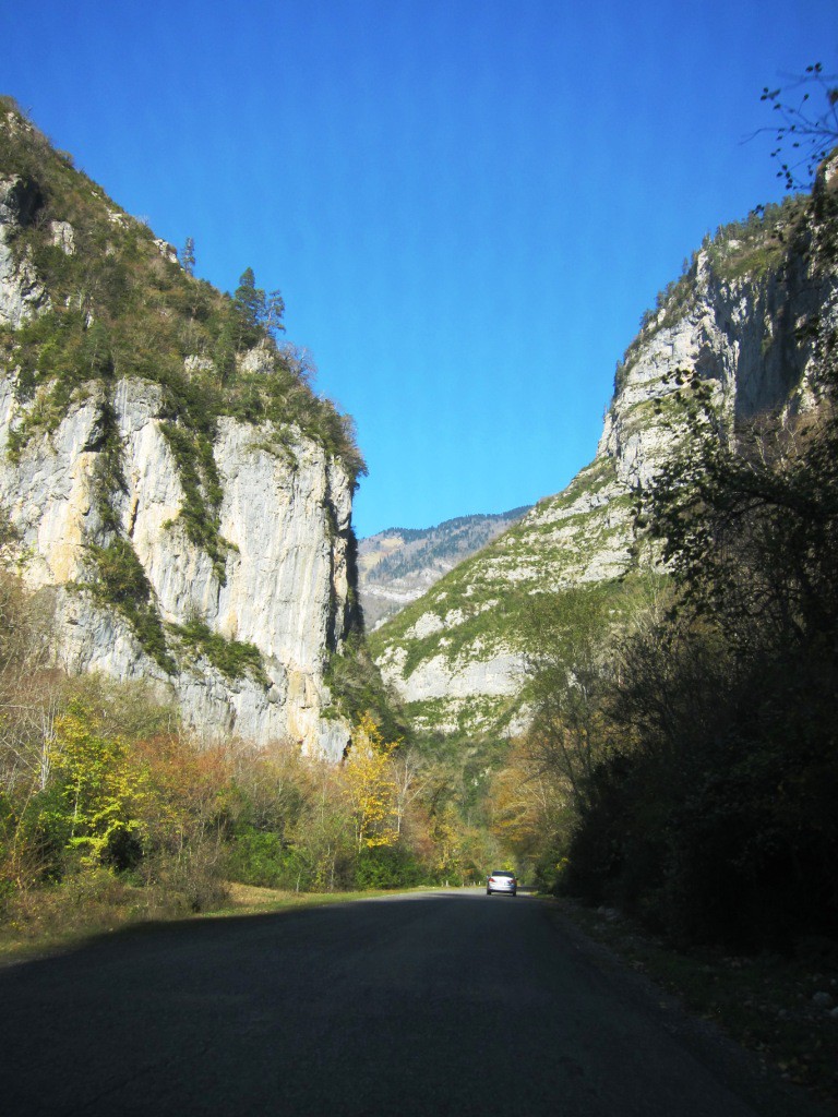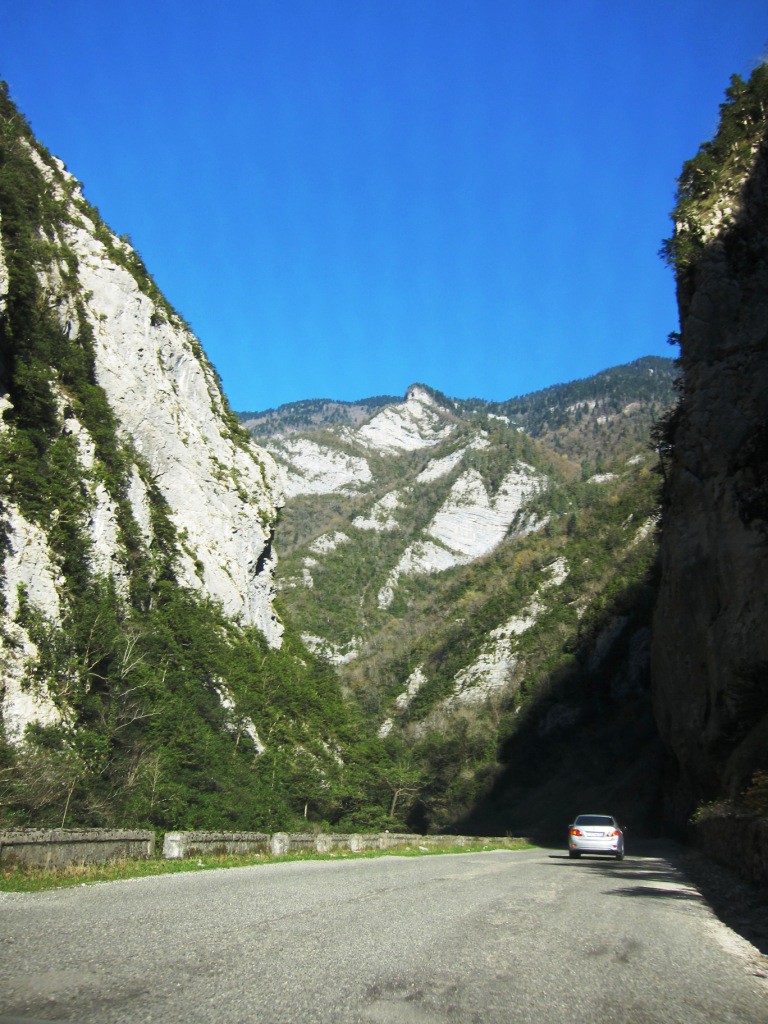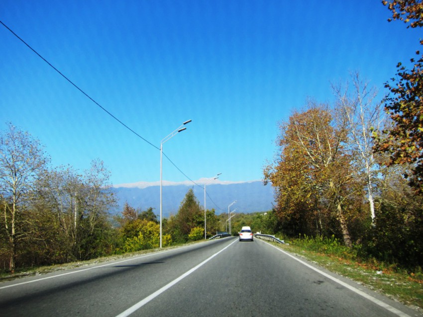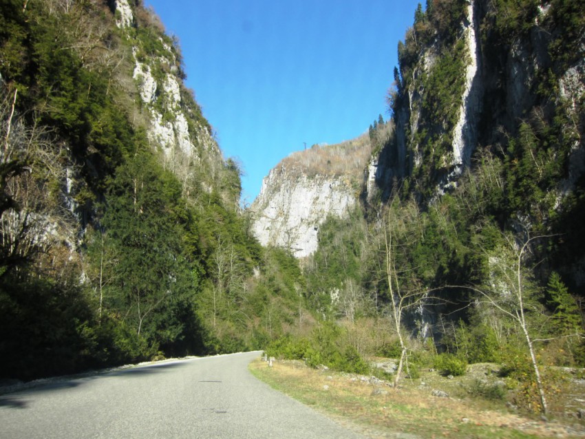 Дорога на озеро Рица. С основной дороги в сторону гор примерно 45 км. Фото через автомобильное стекло, поэтому немного нечёткое, извиняюсь)