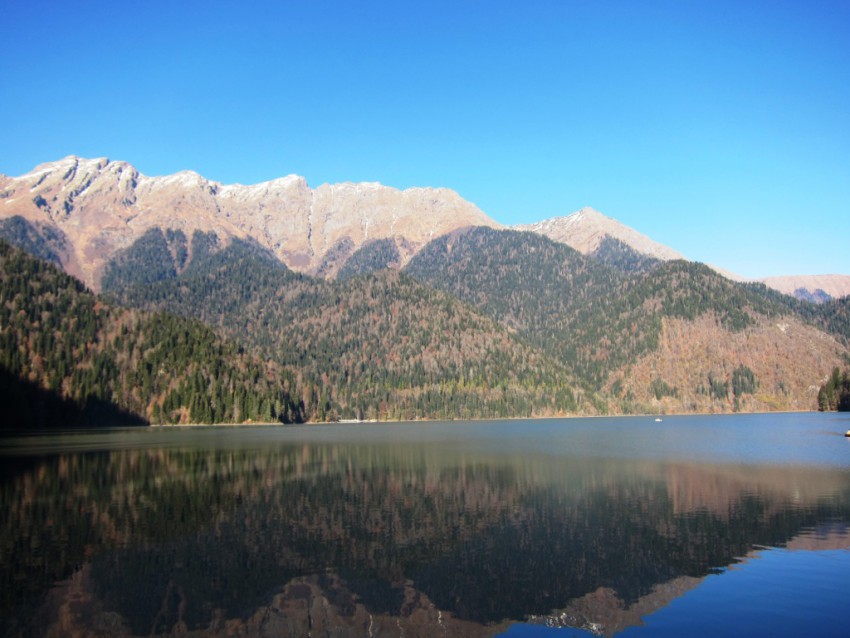 Озеро… На берегу моря температура воздуха была около +25. В горах —