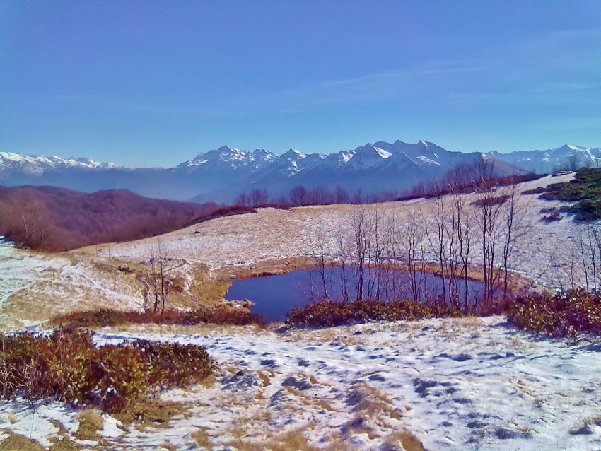 В прекраснейшем настроении прошли от озер Хмелёвских до озера Зеркальное.Водух опьяняюще морозный, под ногами снежок, и тишина…