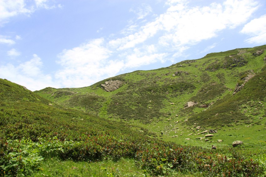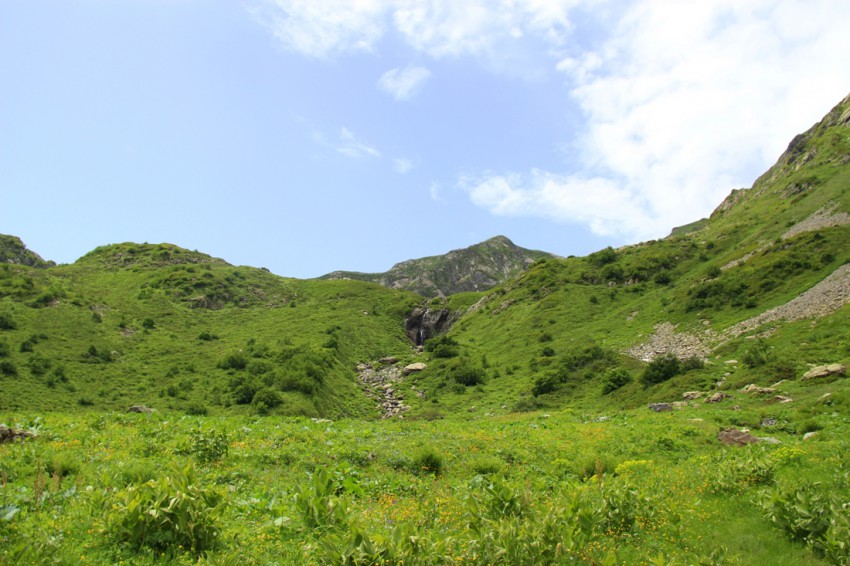 Мы высаживаемся из джипа, прощаемся с водителем и начинаем свой долгий путь на хребет Ачишхо.