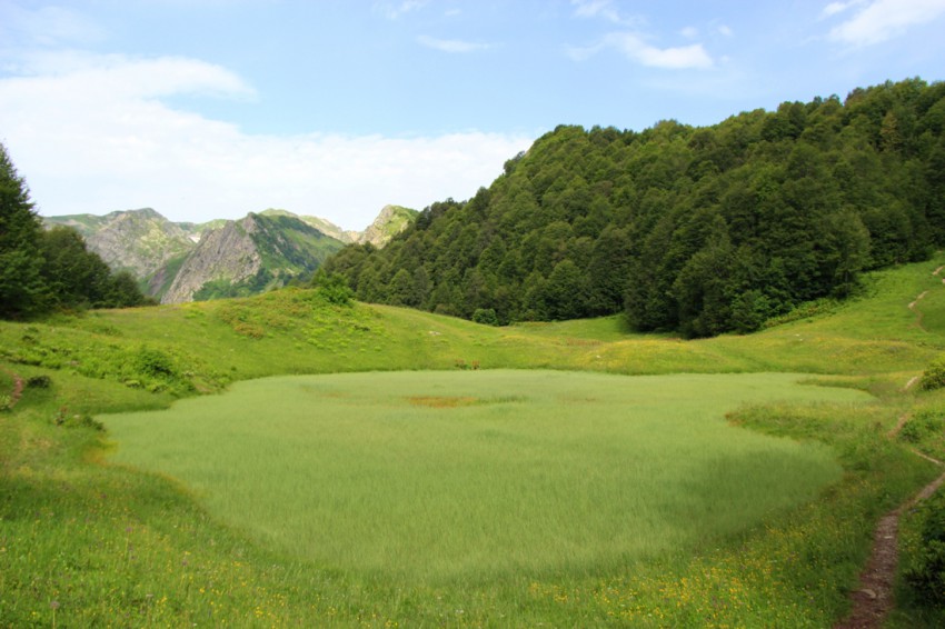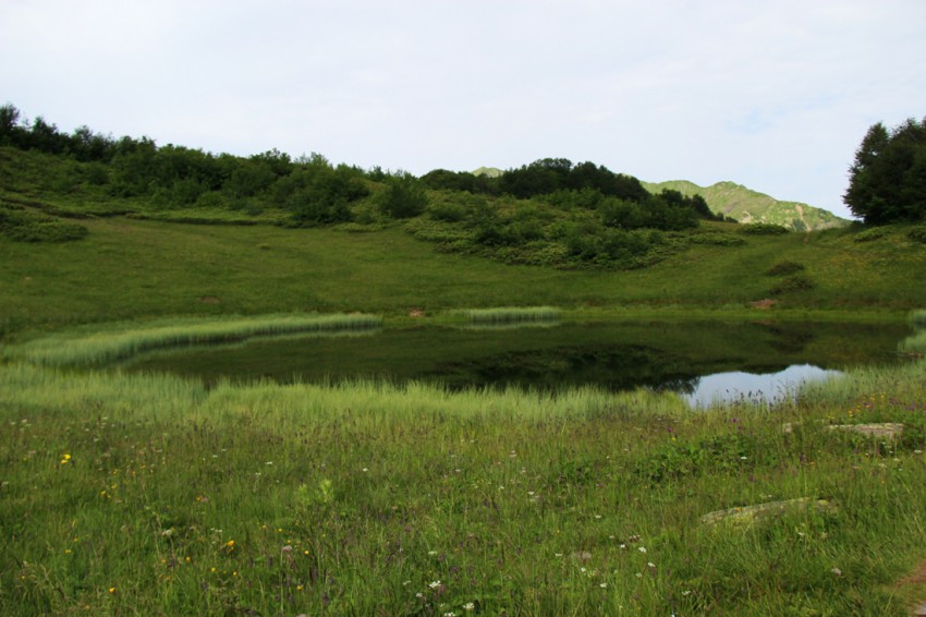 Тропинка выводит к следующему озерцу, которое расположено на живописной цветущей полянке