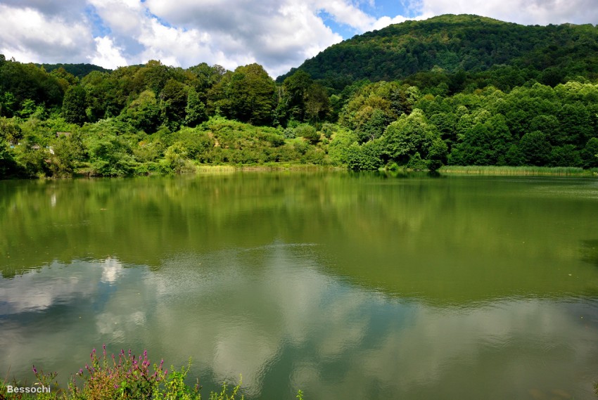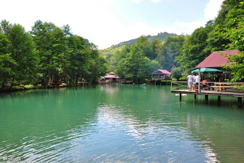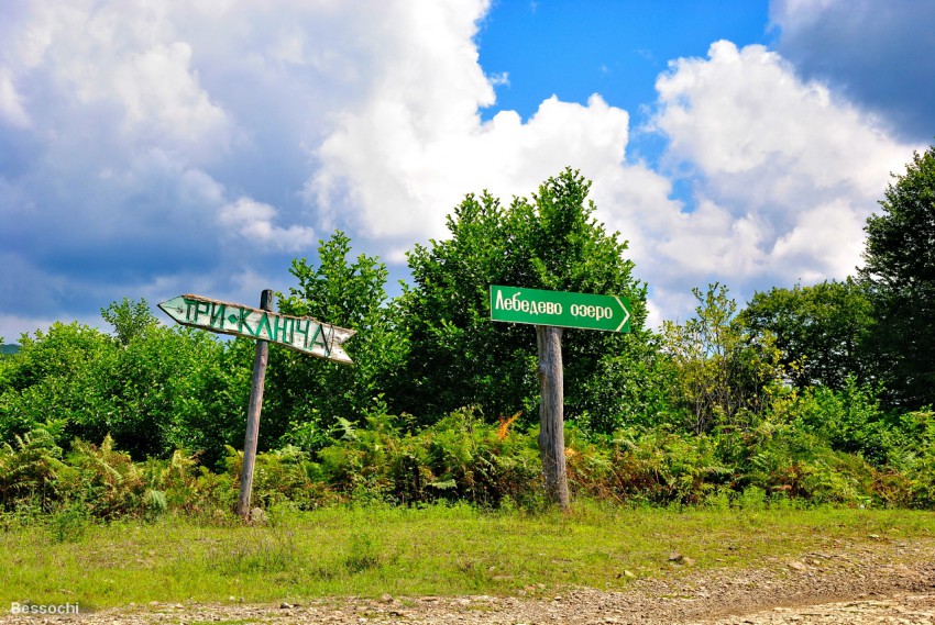 Перейдя через речку и пройдя по дороге еше метров 300, попадаем на те самые 3 ключа. Это своего рода место отдыха, расположено на берегу довольно большого и чистого озера, где даже плавают лебеди.