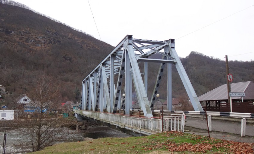 Возвращемся к повороту на Тхагапш. Чтобы в поселок попасть, надо перехать не хилый такой мост. Напоминает почивший молдовский…