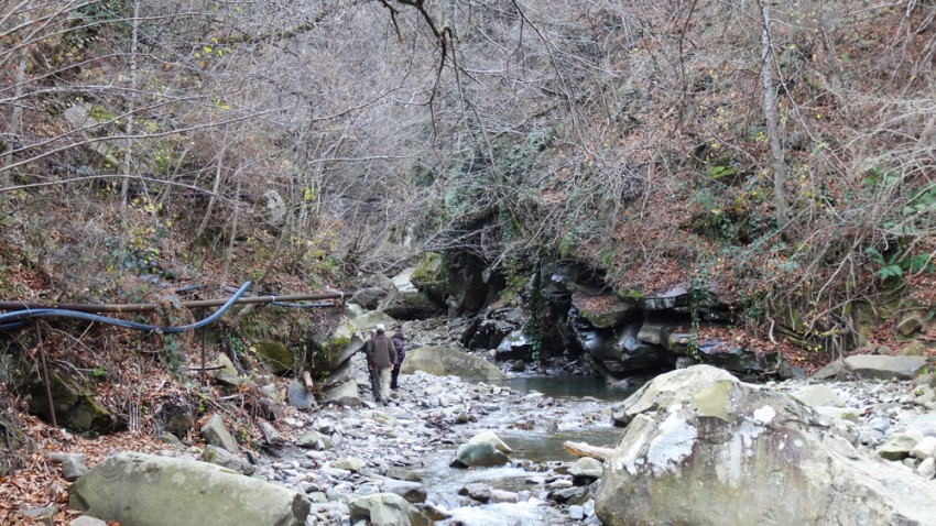 Зато, свернув в русло Псезуапсе нашли еще одну дорогу к пещере. Для того чтобы попасть в небольшое село откуда начинается эта дорога, надо вернутся на основную трассу через мост, проехать вниз по Псезуапсе до канатного мостика. И по нему перейти на другую сторону.