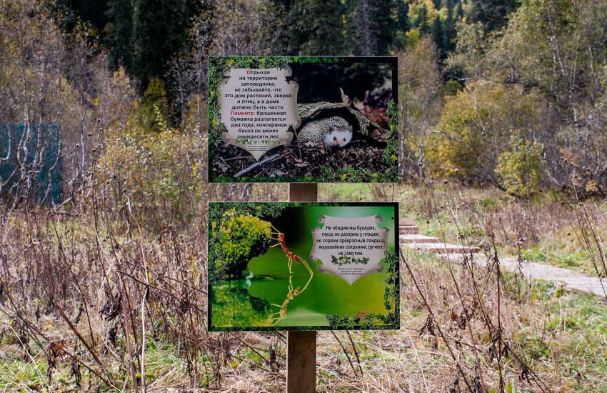 Именно, следуя заповедям этой таблички и надлежит вести себя в заповедники, горько становится, когда даже там, идя по тропе, встречаешь выброшенные пластиковые бутылки и обертки от треклятых сникерсов. (конечно собирал всю это дрянь).