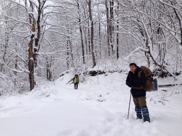 3 х дневный поход на Индюк. Выдвинулись мы на первой электричке до Туапсе…Для меня на вокзале ждал сюрприз, не думал что РЖД на столько подняли проезд в ласточках, от Адлера до Туапсе пришлось выложить 550 р, но деваться уже не куда было…Едем… Через три часа прибыли на станцию Туапсе, где нас ждала следующая электричка до Индюка, здесь проезд на много дешевле оказался всего 48 р с человека, через час мы были на станции Индюк. Зашли в поселок для закупки продуктов, по тех причинам это сделать в Сочи не смогли, в местном Сельпо оказались все продукты необходимые нам для похода, но как оказалось с хлебом в магазине проблема, его продают чуть бы не по талонам, поселок не большой и завозят не так много, была идея взять муки и готовить лепешки, но не в этом походе, все таки он зимний и были кое какие трудности на маршруте. Закупившись продуктами мы решили попить чайку с печеньками, и подождать еще одного участника нашего похода, который по непонятной причины ушел не с нашей группой в Туапсе.