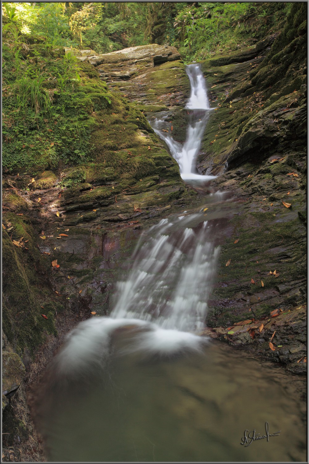 Каскад водоскатов начинается сразу от впадения ручья в Агву.
