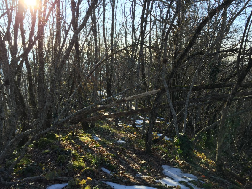 А сейчас, кстати, при повороте туда с бетонки поставили тоже шлагбаум. Конечно, не страшно — там до гребня и дальше в орехи недалеко, но… эпидемия шлагбаумов…
