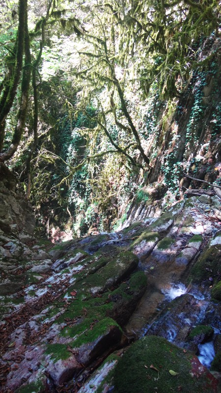 Спустившись вниз, карабкаемся к водопаду. Странно, но кто-то умудрился в одном неудобном месте поставить хорошую лестницу из каштана.