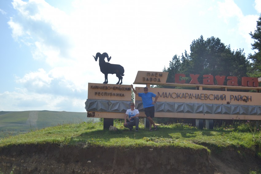 Ехали из Сочи через Шаумяновский перевал, Апшеронск (под которым остановились на ночевку где-то около 0.30 19-го августа), Минводы (в аэропорту, в 12:10 19-го августа забрали еще одного из участников похода из Москвы), Кисловодск. На пересечение границ Ставропольского края и Карачаево-Черкессии мы с удовольствием остановились в красочном месте и с огромным аппетитом съели предложенные местными жителями свежеприготовленные хычины ( с пылу, с жару) и жирный, невероятно вкусный Айран.
