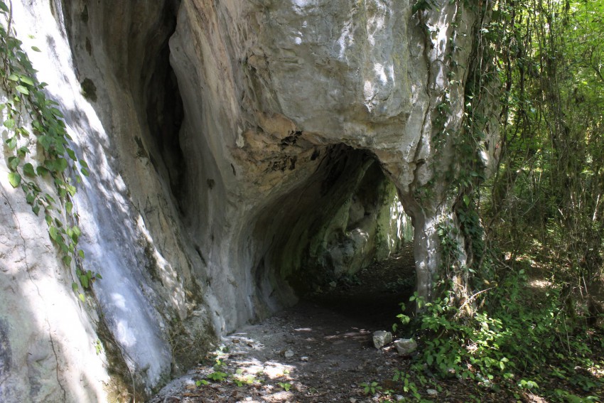 Черный юмор конечно, человек тридцать в этом месте людей утонуло, от многих даже следов не нашли. Часть водного потока Бзыби постоянно ныряет в карст — пустоты в скальной породе, бывают годы, что Бзыбь исчезает полностью, ныряет под землю и там течет, через несколько сот метров выходя наружу.