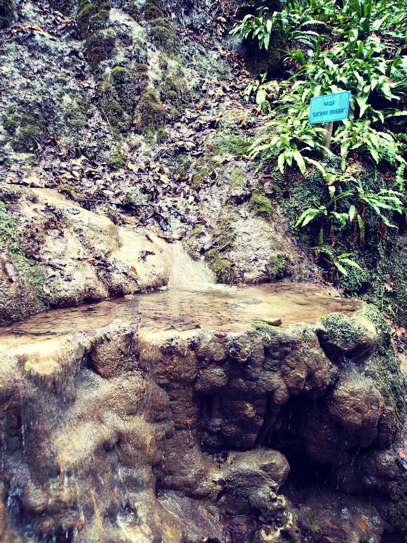 Небольшие каскады водопадов и туфовые наплывы… сам маршрут вполне доступен, и почти везде благоустроен мостками и лестницами. Но встречаются и «дикие места», где нужно пройти, перепрыгивая через ручьи в русле реки. Интересно, что делать если вода поднимется? Скорей всего, тогда пройти можно будет только по верхней части, по которой нам нужно было возвращаться обратно, дойдя до площадки над крайним водопадом. По местной традиции, площадка вся оплетена ленточками «на память».