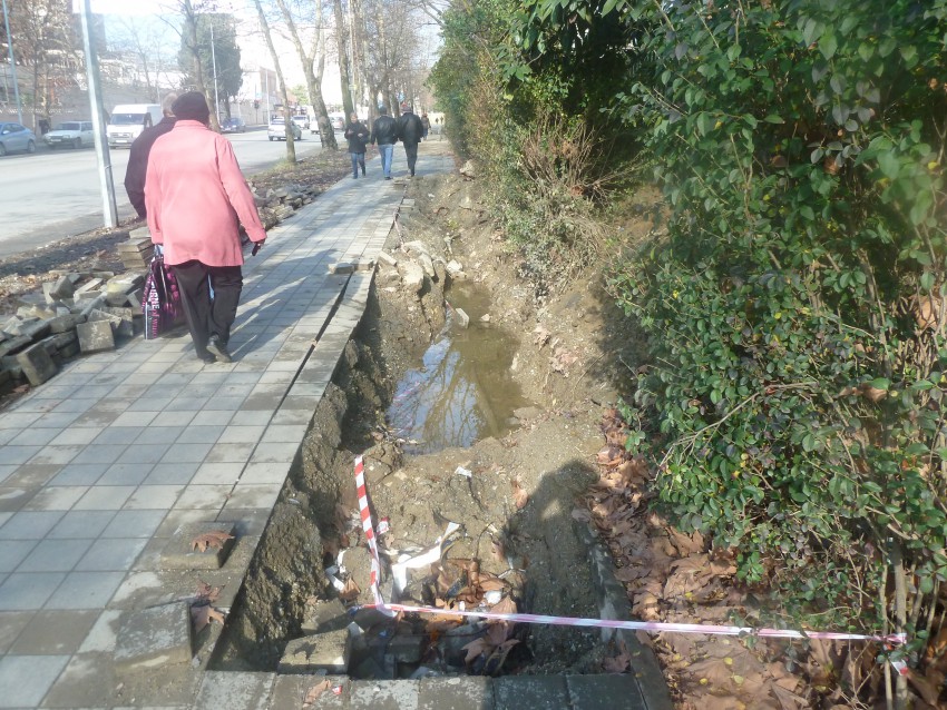 Ну и если вдруг пригонят трактор копать очередную яму, то горожане, обходя место работ по дороге, рискуют ничуть не меньше — на ливнёвке отсутствует решетка. Да и на авто мало радости в люк колесом влететь.