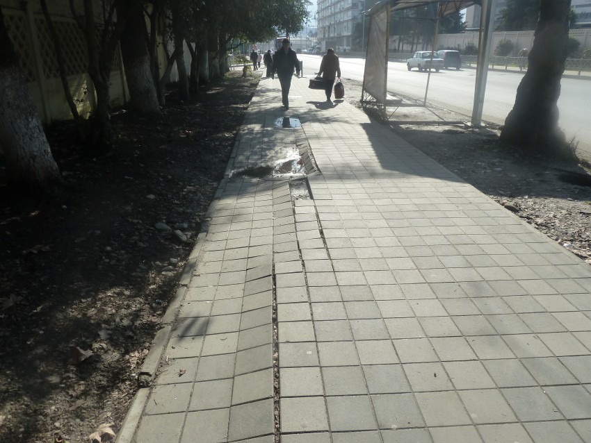 Здесь картина такая же, если не считать, что большие, даже не огороженные ямы, на тротуаре возле общеобразовательного учреждения, создают огромную вероятность детского травматизма.