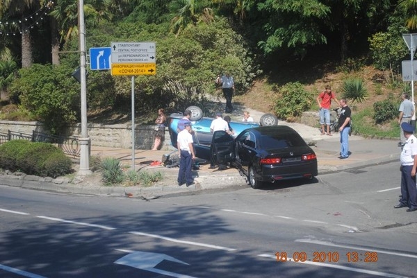 Сегодня около 14-00 на подъеме из Дагомыса в районе «Грушового сада» снова произошла серьезная авария. Столкнулись ВАЗ-21014, поднимавшаяся на перевал, за рулем сидел милиционер, по предварительным данным он шел по своей стороне, без превышения скорости, навстречу ему вылетела иномарка темного цвета, модель я не смогла рассмотреть ее уже погрузили на эвакуатор и увозили. Никто не погиб. От столкновения иномарка загорелась. Вызывали пожарную машину. Федеральная трасса стояла в оба конца больше трех часов. Водители, будьте осторожны!!!