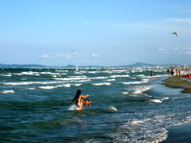 Скажу сразу: сравнение не вполне корректное. Там — широкая береговая полоса пляжа, а здесь — даже если и широкая, то малообустроенная или не обустроенная вообще (хотя чаще — узкая пляжная полоска). Но, тем не менее…