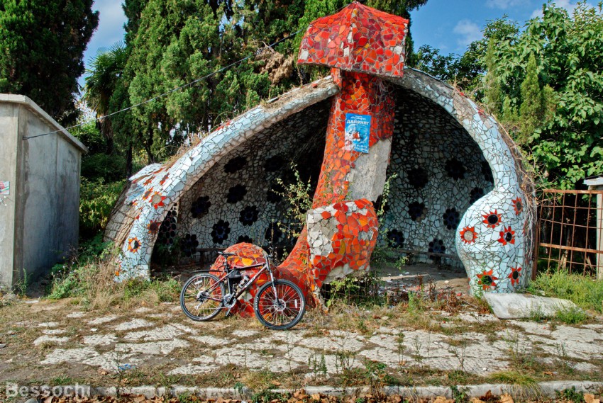 Прошлое мое путешествие в Абхазию прошло по верхней основной трассе в Гагру, но оказалось, что есть еще альтернативная дорога, которая проходит через поселок Цандрипш и намного живописней, чем я и решил воспользоваться. Как всегда с утречка пораньше грузимся в «Ласточку», едим до Олимпийского парка, а оттуда уже до КПП. Помня как прошлый раз было неудобно пробираться по пешеходному мосту, в этот раз поехал по автомобильному, тут вобше все просто и быстро и никаких проблем. Я даже проехал будку с паспортным контролем и никто мне слова не сказал, наверно можно было ехать и дальше, никто бы и не заметил, но на всякий случай я вернулся и показал паспорт. Вся эта процедура заняла не более 5 минут и мы в Абхазии.