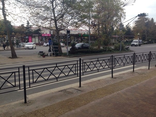 В Хосте на всех улицах меняют часть тротуаров. Убирают плитку, и заливают бетоном, образуя пандус.