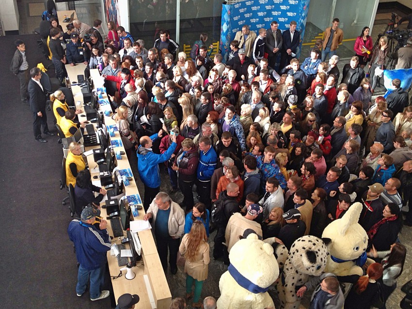 Все, Главный билетный центр игр Сочи 2014 в здании вокзала РЖД открылся и работает. Свалка доложу вам жуткая.