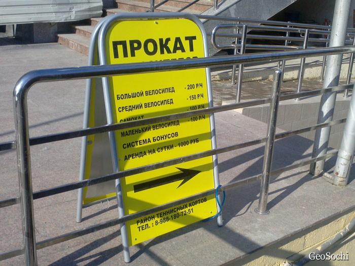 Велопрокат на набережной Сочи у теннисных кортов. Недорого, надо будет покататься, вот только где?