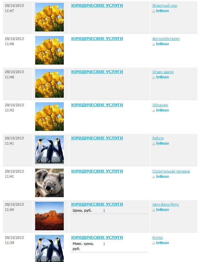— на маркете куча объявлений одного и того же «юридические услуги»