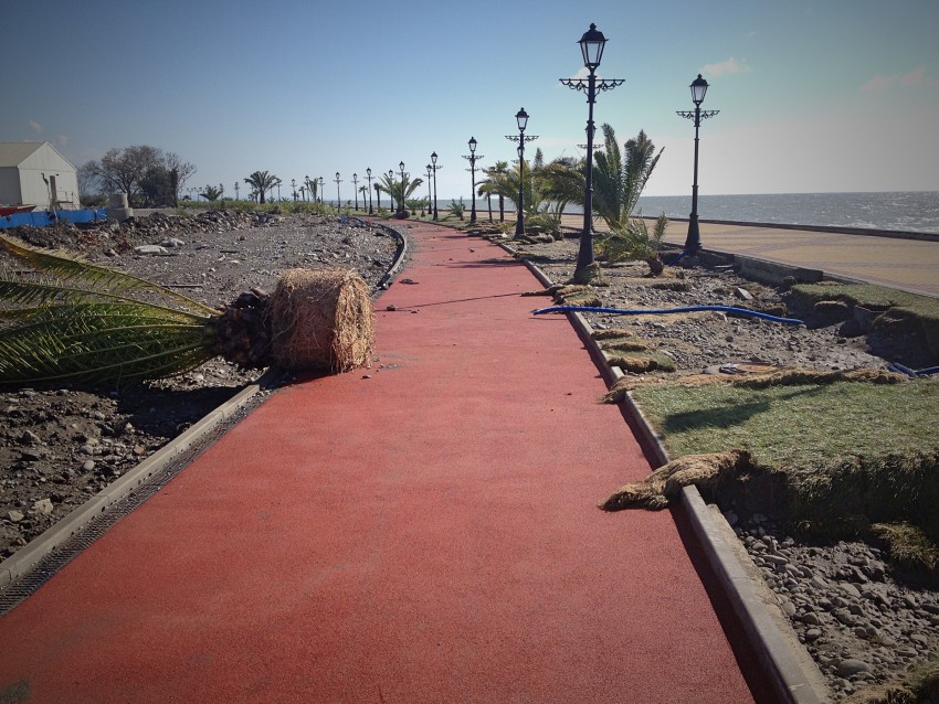 Размытая штормом набережная в Олимпийском кластере #Сочи