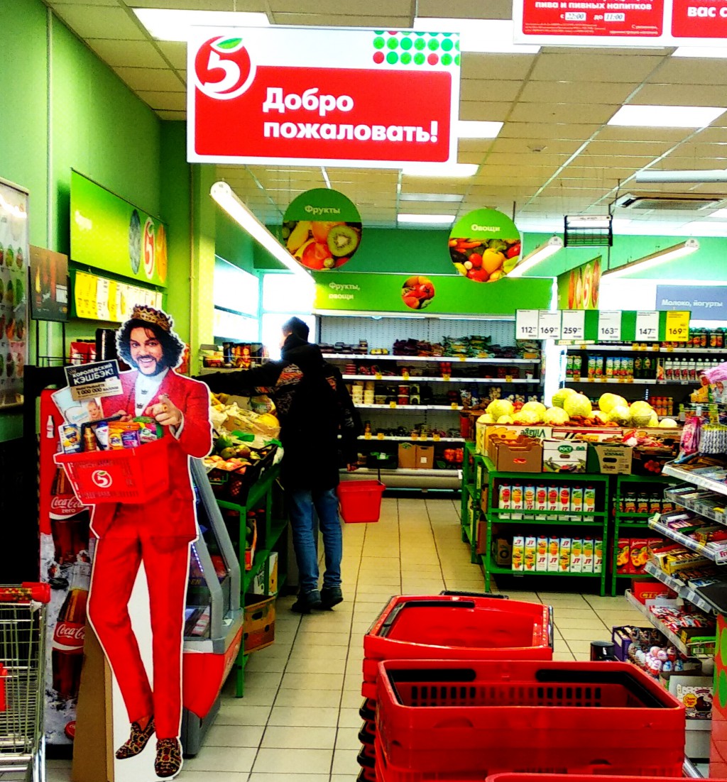 Певец улицы у супемаркета «Перекрёсток