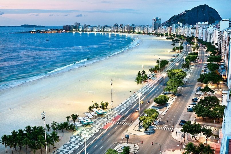 Копакабана — знаменитый четырёхкилометровый пляж в Рио-де-Жанейро, Бразилия