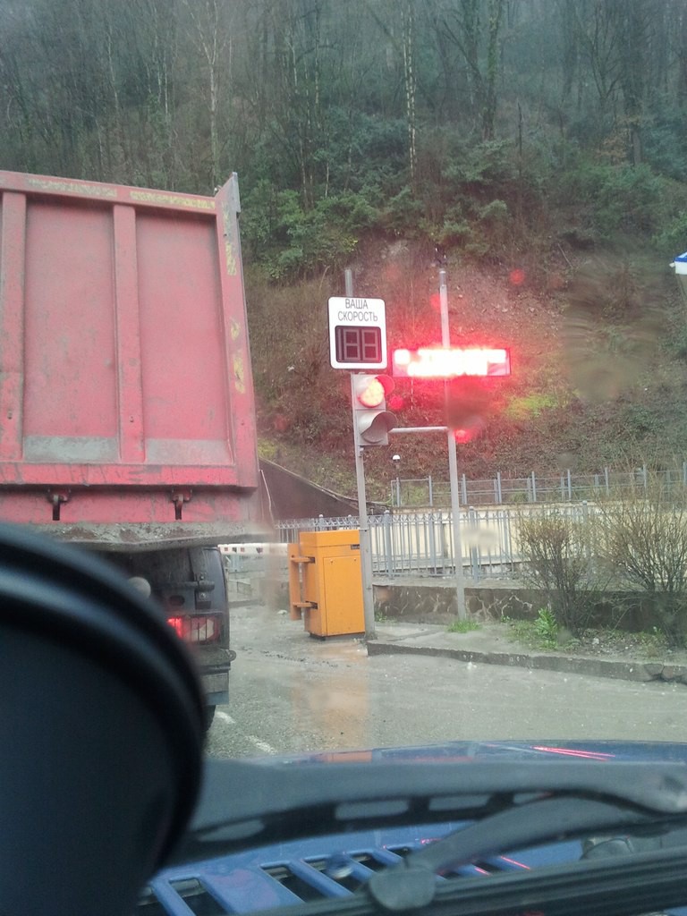 Очередная авария в длинном тоннеле по дороге в Поляну. На этот раз собрался паровозик и пяти грузовиков. Пробка ~2км в обе стороны.