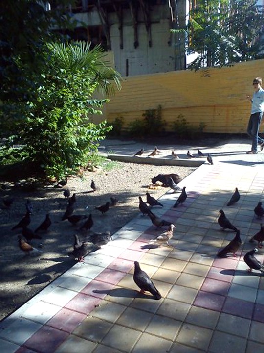 На ул. Роз всё лето голуби и коты мирно ели вместе.