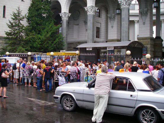 На выставку РЖД не пускают. Вокзал эвакуирован. Ищут бомбу. К поездам — заранее через боковой проход.