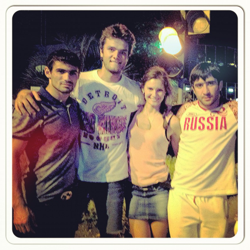 с чемпионами Олимпиады Лондона на улице в Сочи.Дзюдоисты Арсен Галстян и Мансур Исаев