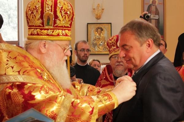 Митрополит наградил мэра орденом пр.Серафима Саровского 3-й ст. за усердность, труды и помощь в строительстве Храма св.князя Владимира