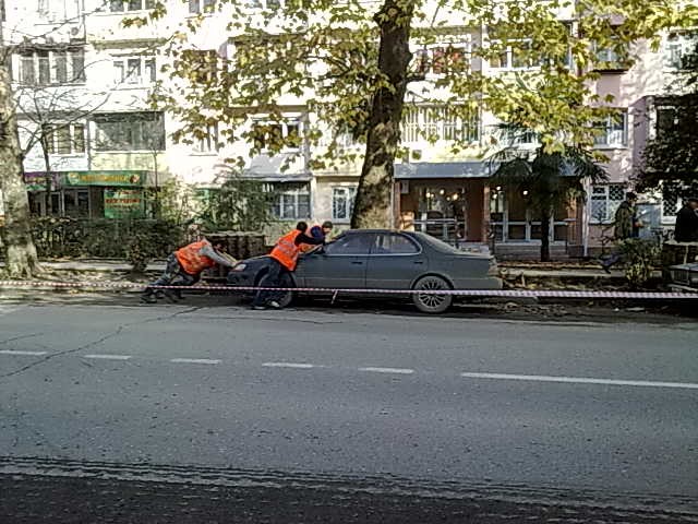 Без эвакуатора — дорожные рабочие сдвигают вручную заброшенные на обочинах, и мешающие ремонту дороги, авто.