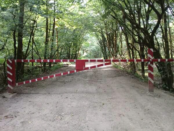 Ни у кого нет догадок, какая (зачеркнуто) кто мог бы установить этот шлагбаум на грунтовке вдоль р. Хоста Западная, близ заведения Фазенда?