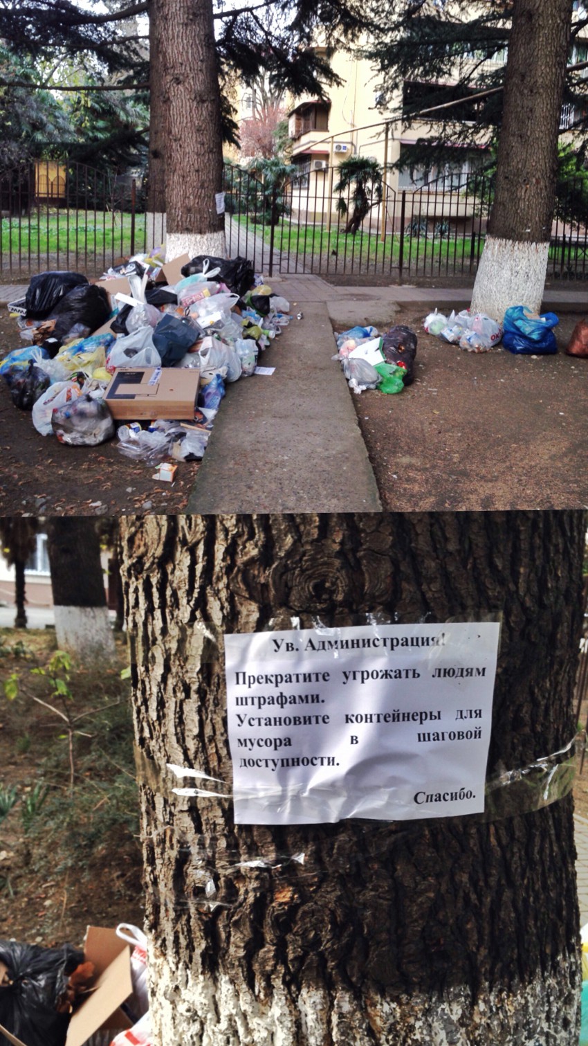 Вот такая«необъявленная война»на фоне новостей об очередном сокращении в Сочи количества мусорных контейнеров во дворе на Островского,25