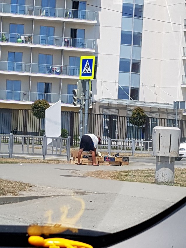 Певец улицы у супемаркета «Перекрёсток