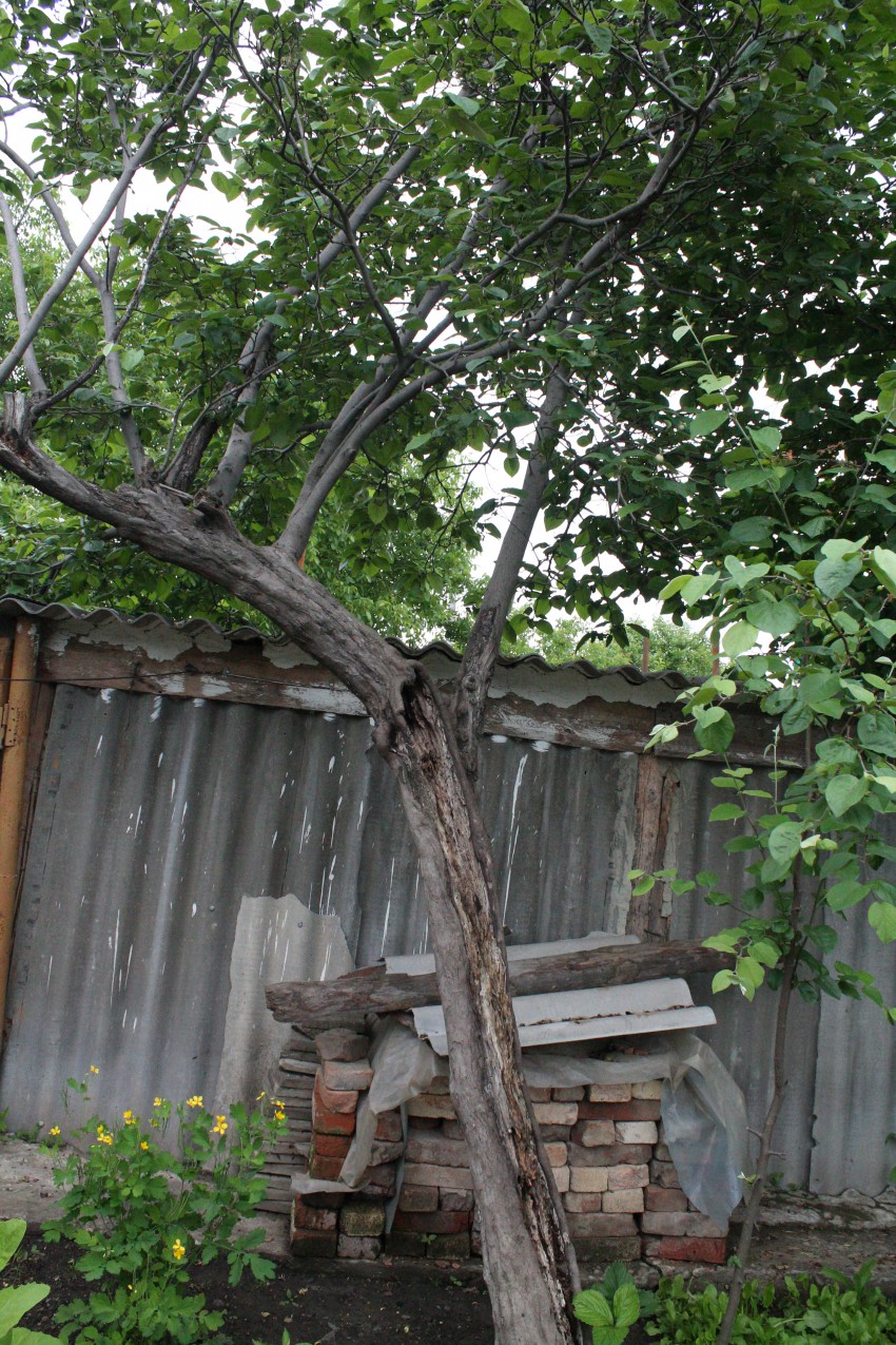 Айва практически съеденым стволом короедом, но в бурной зелени листвы