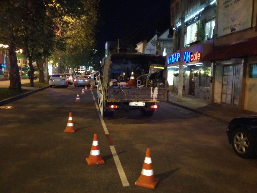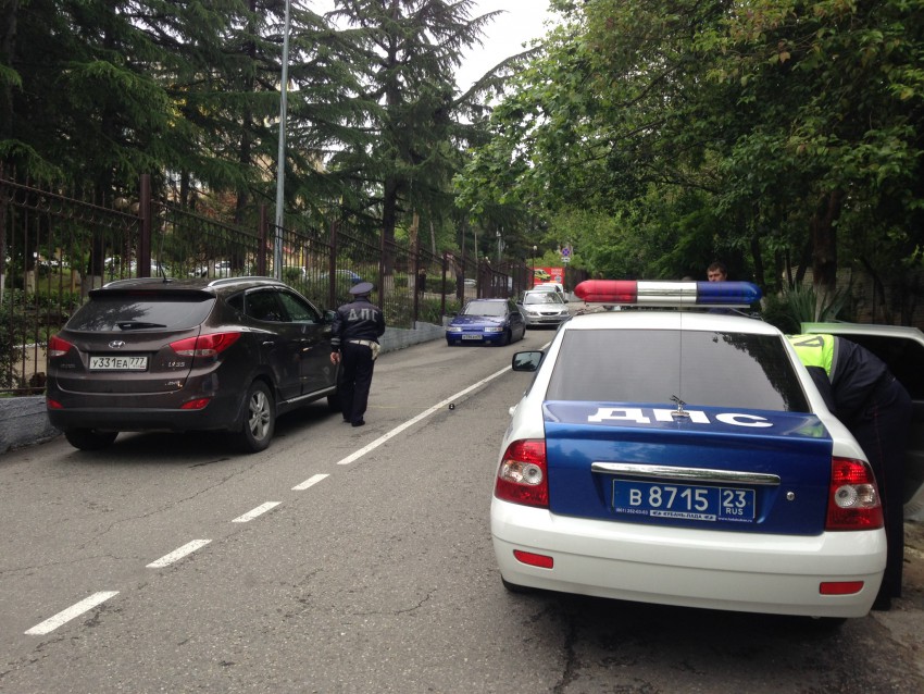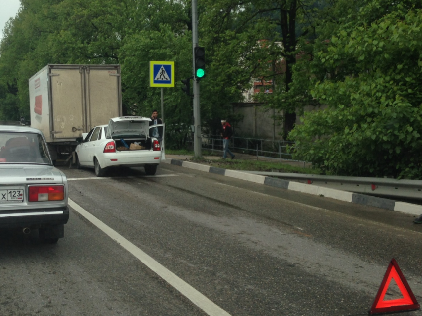 Сегодня утром в Дагомысе. Виновник пробки на светофоре.
