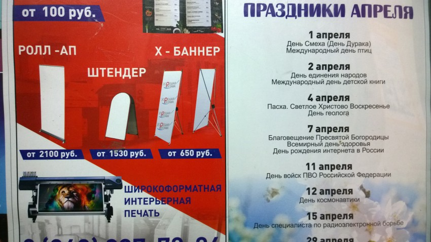 Реклама в лифте.Обратите внимание на дату Пасхи.