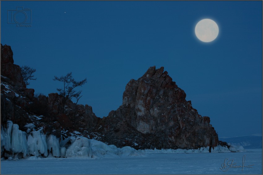 Привет с зимнего Байкала.Полнолуние у Шаманки.