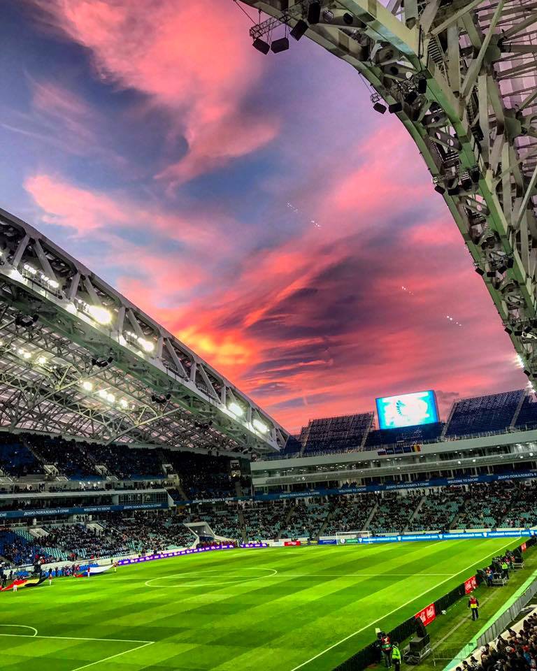 Фотография не моя — Ульяны Косань… Первый матч на стадионе «Фишт» под такой закат… Слов нет…