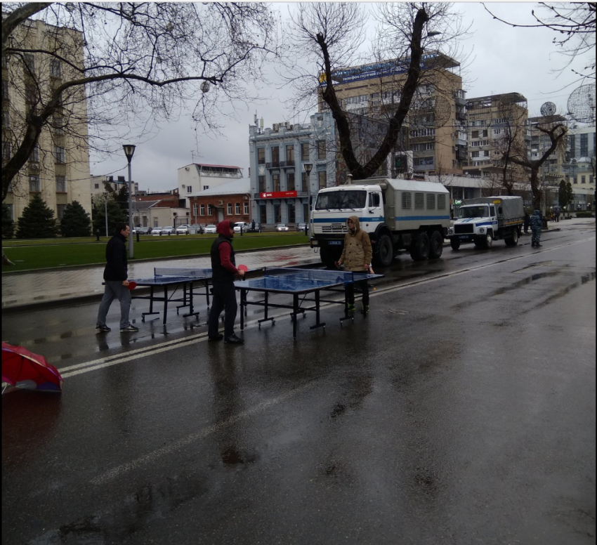 Сейчас. Турнир по пин-понгу в Краснодаре. Перед краевой администрацией.
