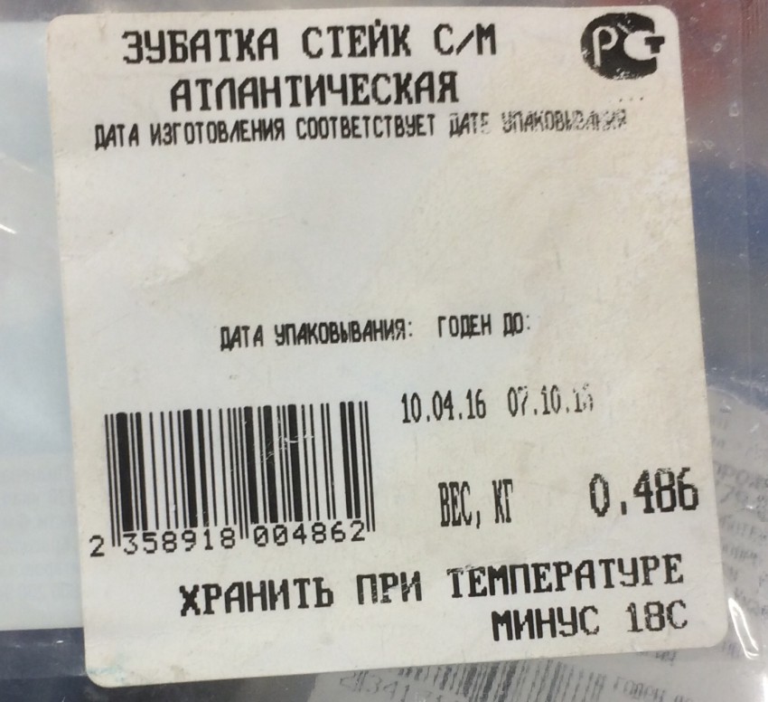 Просроченная рыба в ГМ Магнит на Новой Заре. Наледь после неоднократной разморозки.