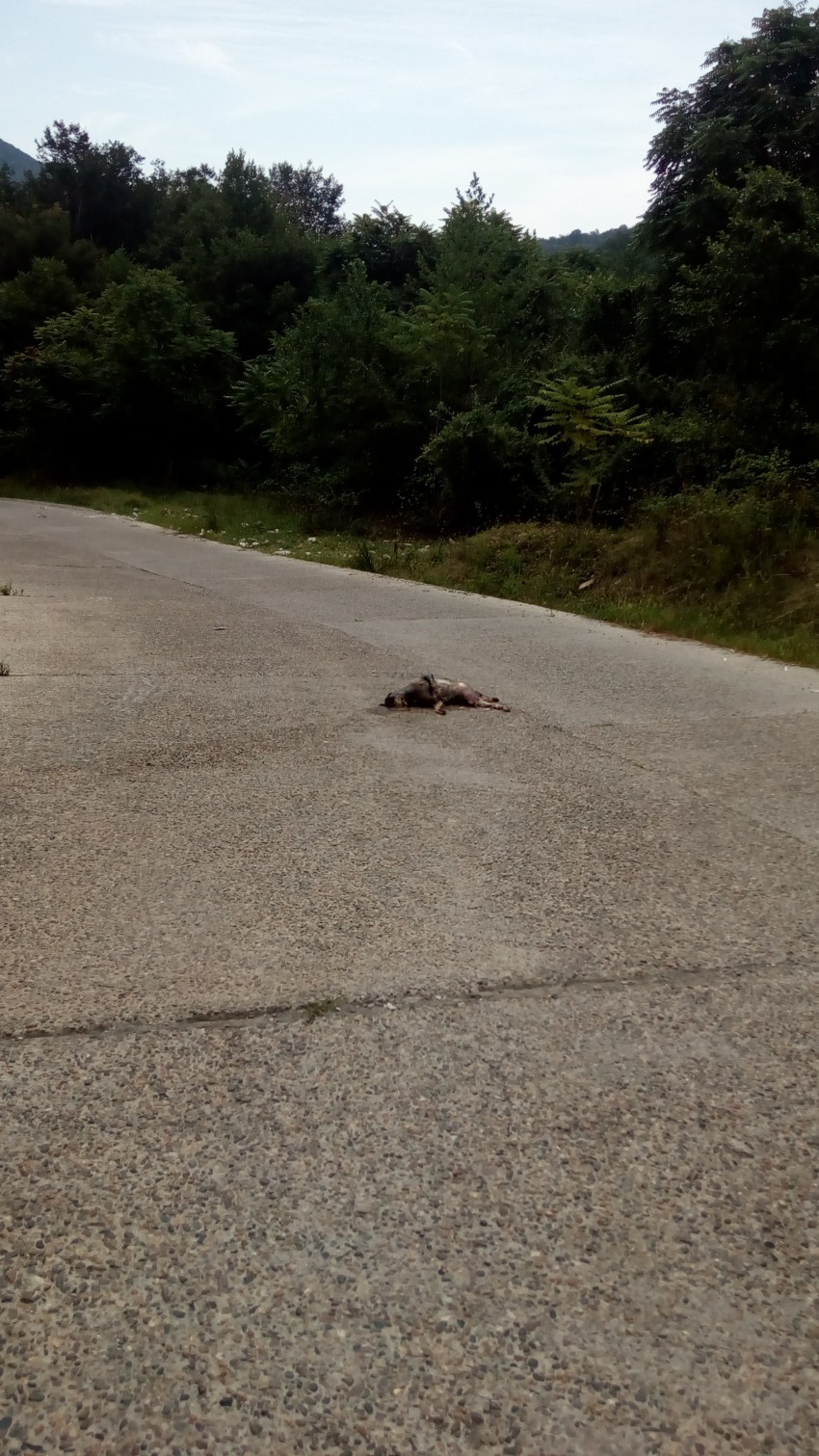 Гнилая собака выпала с мусоровозки. Убрать за собой откащалить.